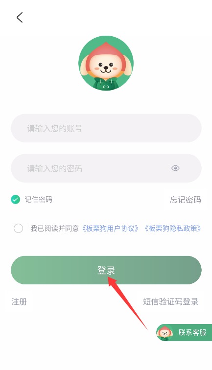 2、填写手机号码和密码,勾选同意服务协议后点击登录按钮完成账号验证。