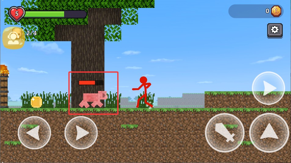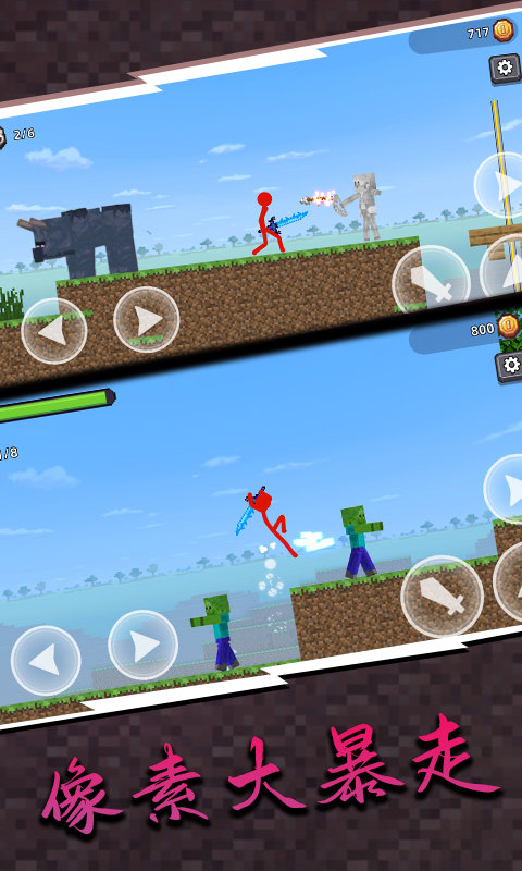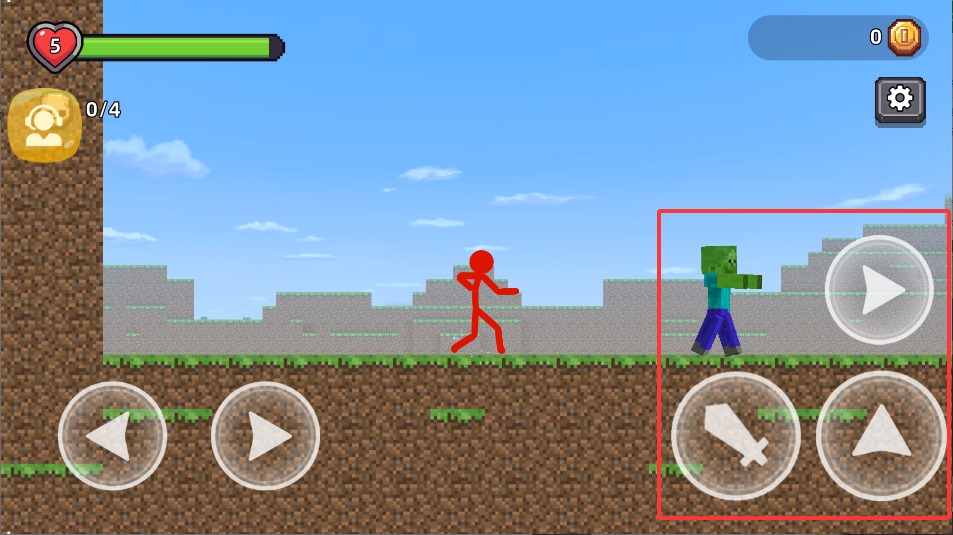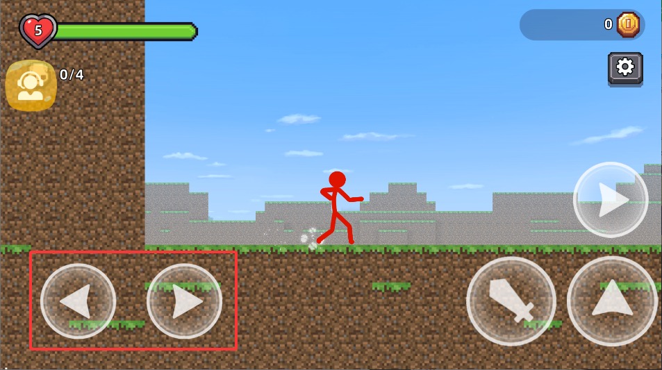 1、点击左边按键两侧控制角色移动,左侧按键负责向左行走,右侧按键则向右前进。