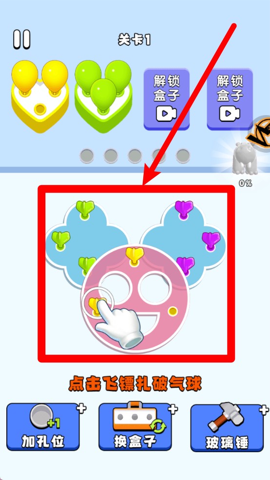 1.点击开始游戏按钮即可进入挑战关卡画面,解锁你的气球破除与螺丝拆解烧脑旅程。