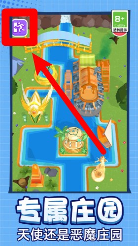 3.专属庄园系统入口在左上角图标位置,点击可进入天使或恶魔庄园场景进行个性建造和互动。