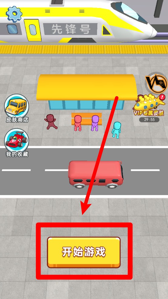 1.开始游戏操作:点击主页面下方“开始游戏”按钮,派出载具接送排队乘客,正式开启接车闯关任务。