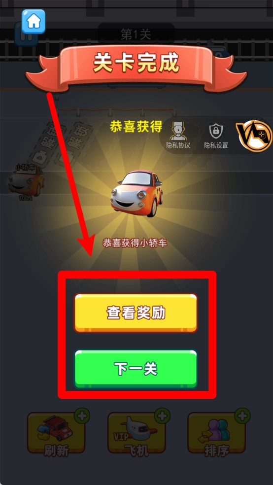 3.完成关卡奖励:成功完成关卡后将解锁新车辆,点击“下一关”可继续挑战,或选择“查看奖励”领取专属奖品。