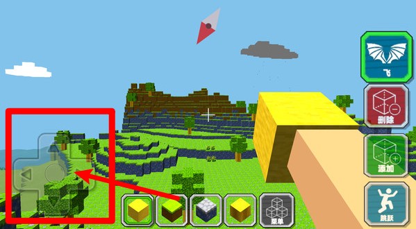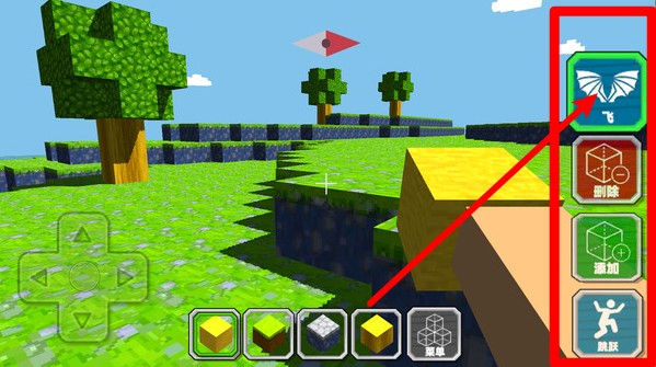 1.点击右侧“飞”按钮可开启飞行模式,在空中自由移动视角与位置,适合快速探索与空中建造高处结构。