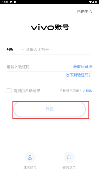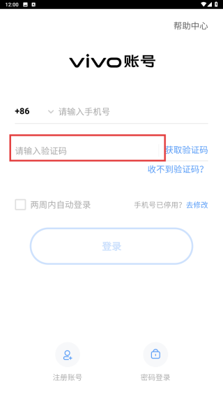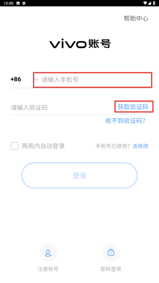 1、打开登录界面,输入【手机号】后,点击【获取验证码】。
