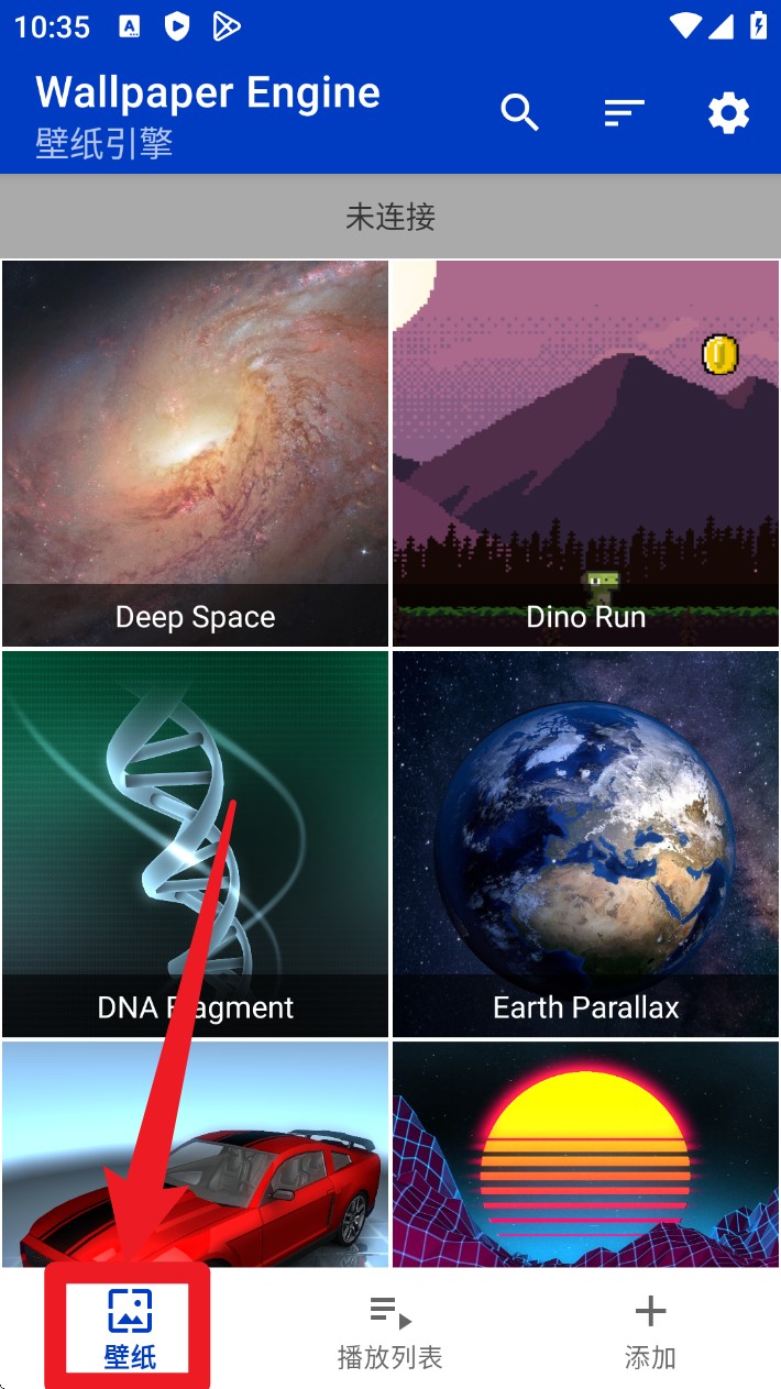 1. 打开 App 后点击底部的「壁纸」页签,即可浏览本地壁纸库,预览当前可用的动态壁纸资源。