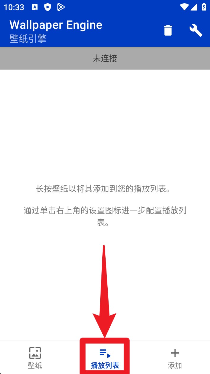 2. 切换到「播放列表」页面,长按某个壁纸可将其添加至列表中,支持设置轮播循环播放。