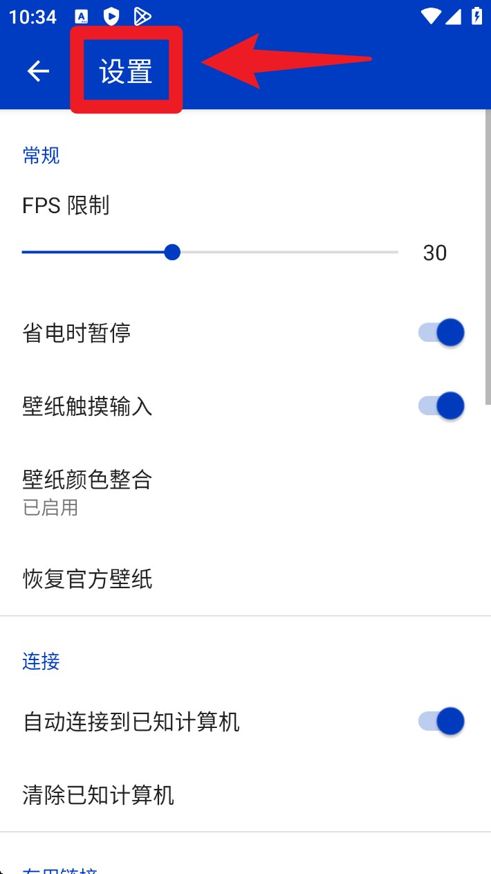 4. 点击首页右上角齿轮图标进入「设置」界面,自定义帧率、触控效果、颜色整合等播放参数。