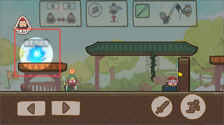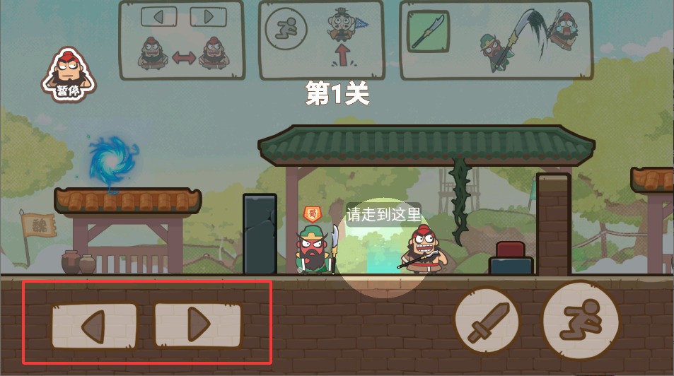 1、通过点击屏幕左侧区域控制三兄弟横向移动,注意保持队形相互掩护,避开敌方远程攻击范围。