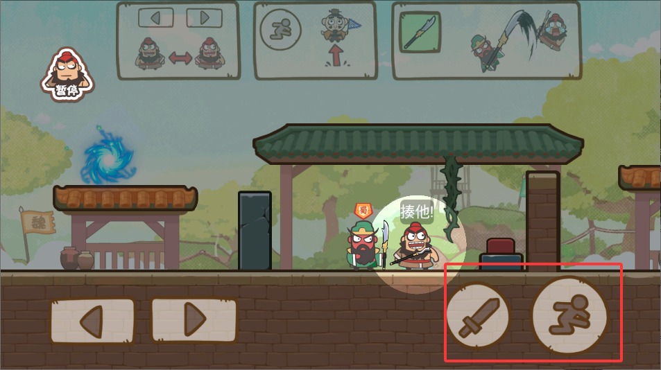 2、点击右侧按钮可发动跳跃攻击,抓准时机突袭高处敌人,集火优先消灭治疗单位和输出主力。