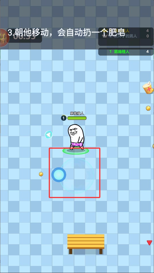 1、通过手指滑动屏幕控制角色在澡堂中移动,注意地面湿滑会影响移动速度,要提前规划行进路线。