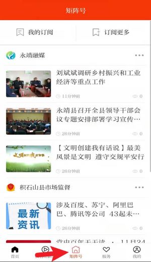 2、在首页点击“矩阵号”标签,可查看各政府部门与媒体发布的图文内容,获取权威信息。