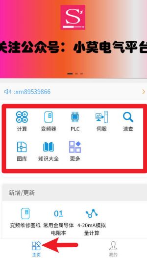 2、主页面中可选择计算、变频器、PLC等功能模块,点击任一图标即可快速进入相关工具使用。