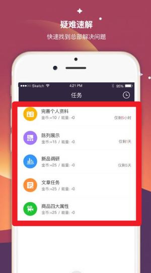 2、在任务页面中,用户可以查看每日需要完成的任务内容,包括完善资料、新品调研与文章阅读等,并获取相应金币奖励。