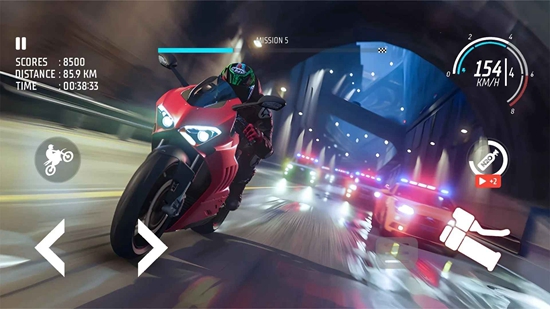 3.流畅操作手感:精心设计的操作模式,简单易上手,通过虚拟摇杆和按键,玩家可以精准控制摩托车的加速、刹车、转向等动作,实现流畅的驾驶操作。