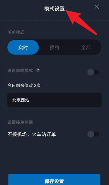 5、模式设置中可切换听单模式与接单范围,灵活调配行程接送站点与订单偏好。