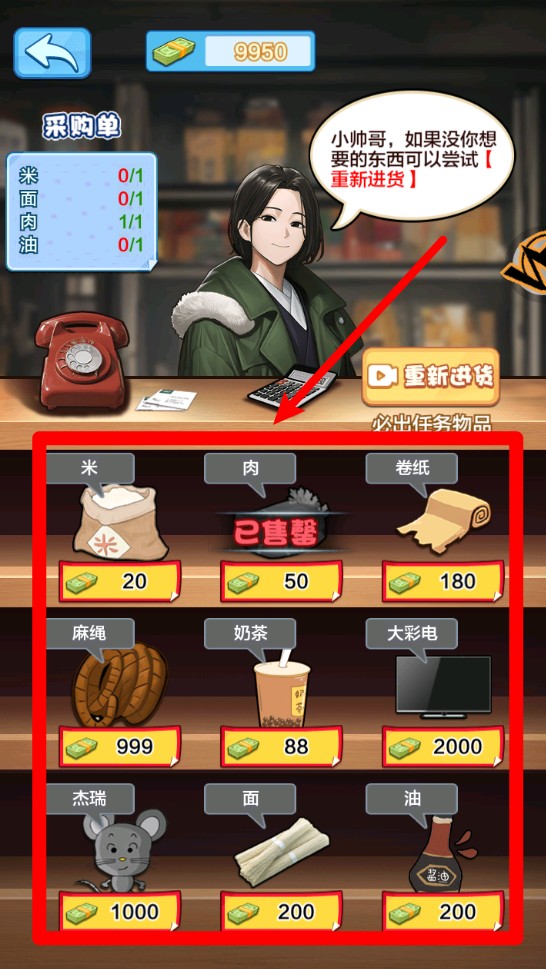 2.前往超市购物:根据左侧采购单内容,在下方分类中找到所需物品,点击购买即可完成任务所需材料采集。