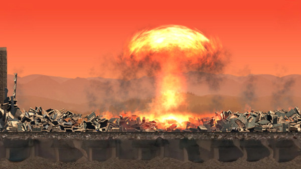 2.画面右侧垂直排列的武器按钮区,包含导弹、核弹、激光等高科技破坏选项,自由组合超带感。