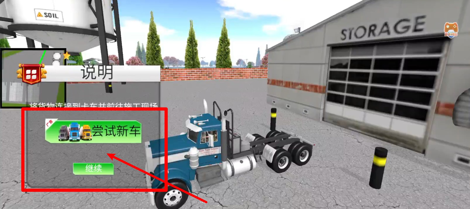 1.尝试新车体验:点击界面上的“尝试新车”按钮可临时使用多款不同类型卡车进行试驾,解锁更多驾驶乐趣。