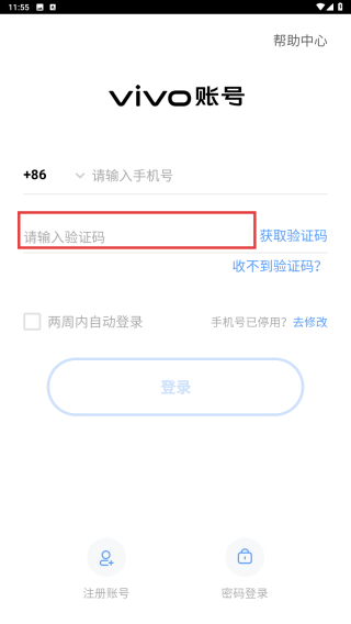 2、点击输入接收到的【验证码】。