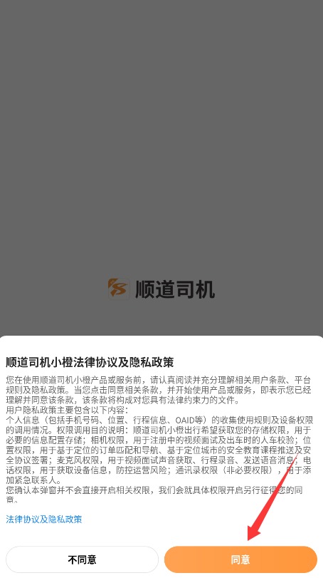 1、初次使用需完整阅读平台服务条款与隐私政策,确认后点击同意按钮进入应用。