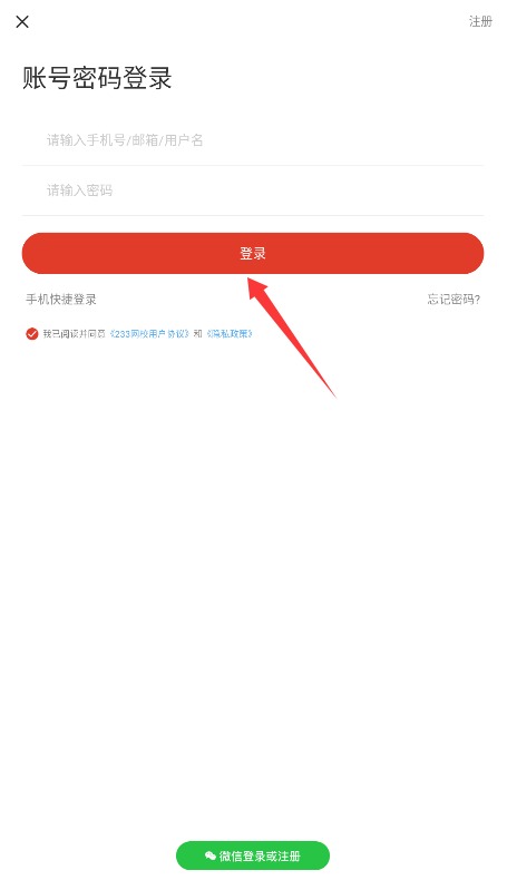 1、使用手机号或邮箱登录平台,输入密码并勾选同意用户协议后点击确认完成账号登入。