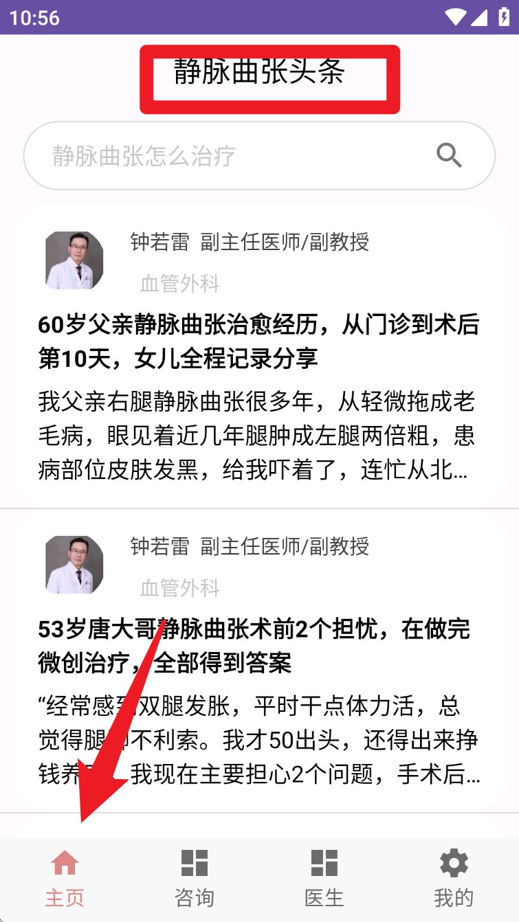 1. 在首页可浏览患者分享、治疗案例等资讯,快速了解静脉曲张常见问题与恢复经历。