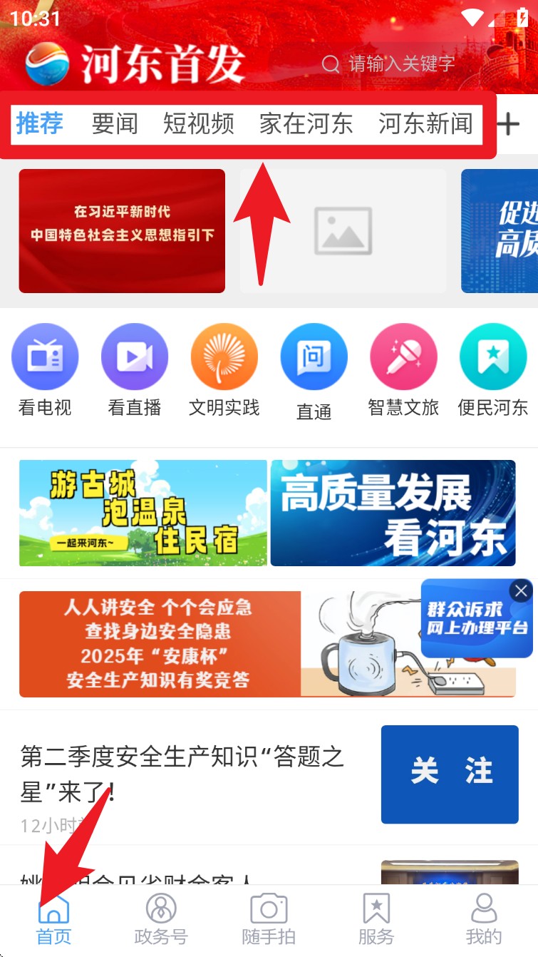 1. 在首页栏目中可浏览推荐资讯、要闻报道及短视频内容,快速掌握本地热点信息与生活动态。