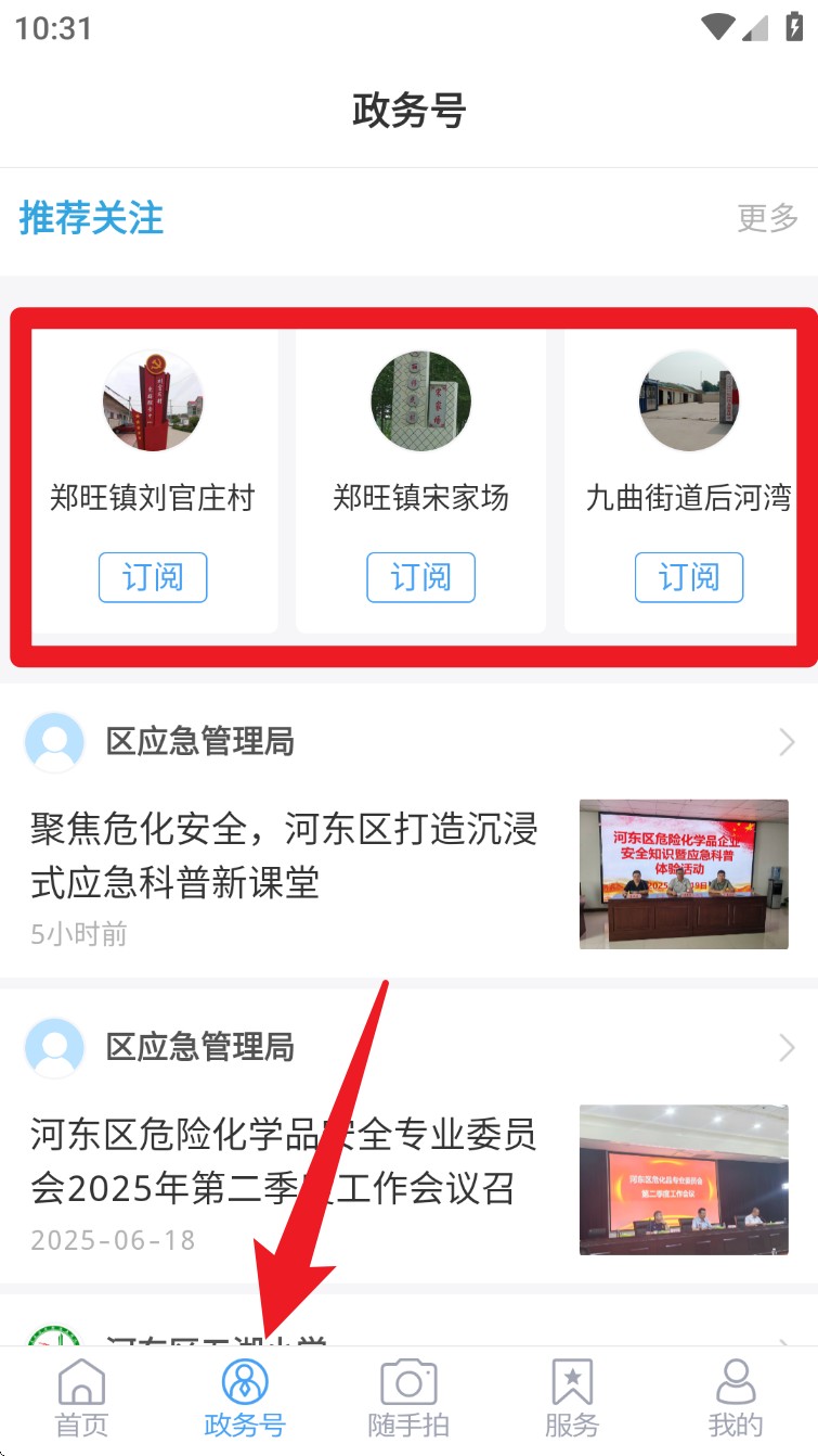 2. 进入政务号页面,点击关注相关账号,可及时接收官方发布的通知与政策服务。