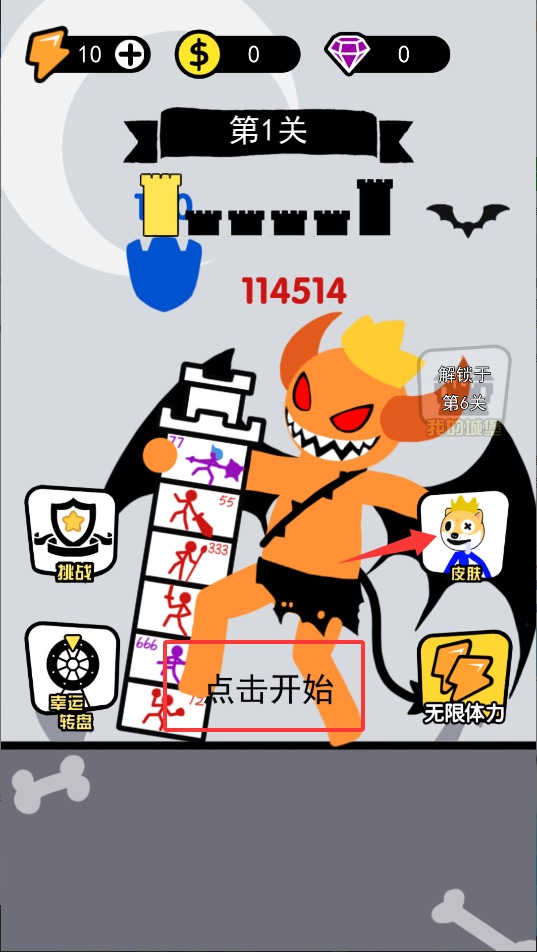 1、爬塔闯关模式挑战操作极限。通过层层递进的关卡设计,逐步提升玩家操作水平,最终迎战终极BOSS。