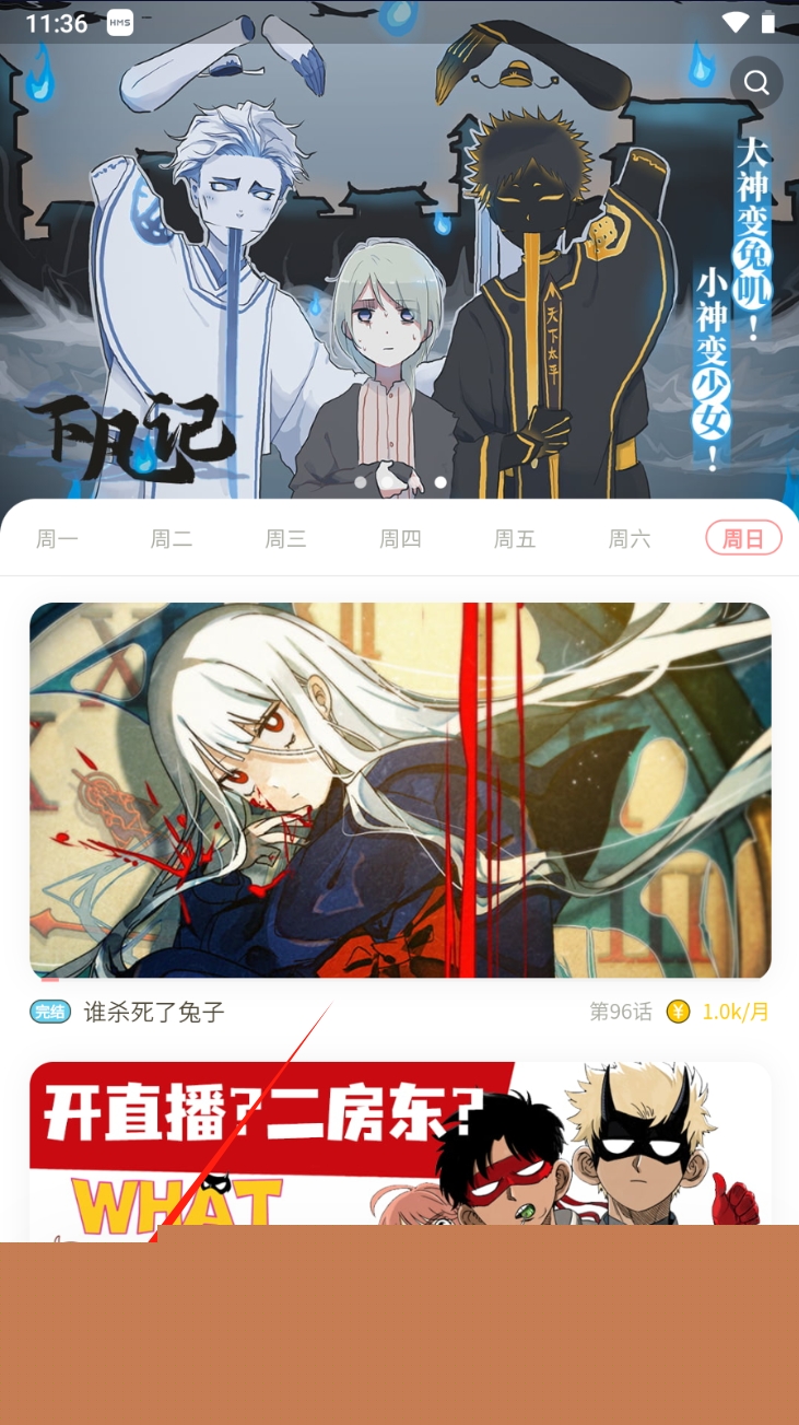1、点击底部导航栏中的“主页”图标,浏览推荐的漫画内容和更新信息。