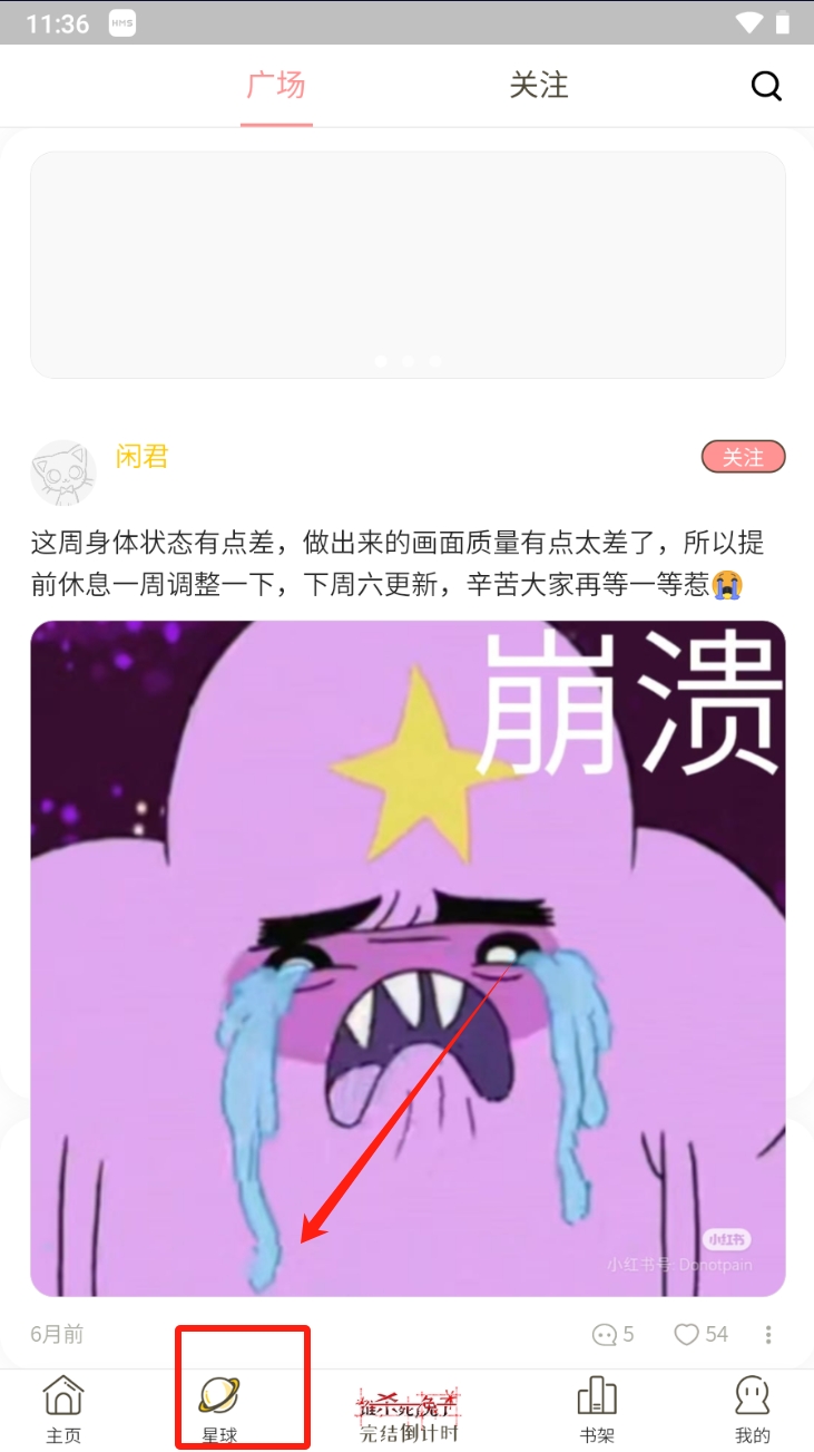 2、点击底部导航栏中的“星球”图标,查看社区动态和用户发布的内容。