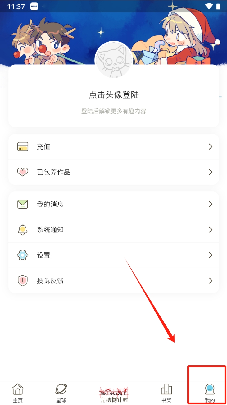 3、点击底部导航栏中的“我的”图标,进入个人中心,点击头像进行登录。