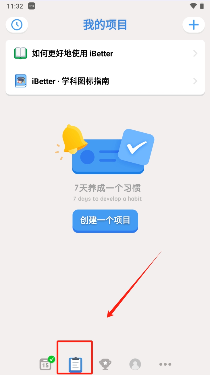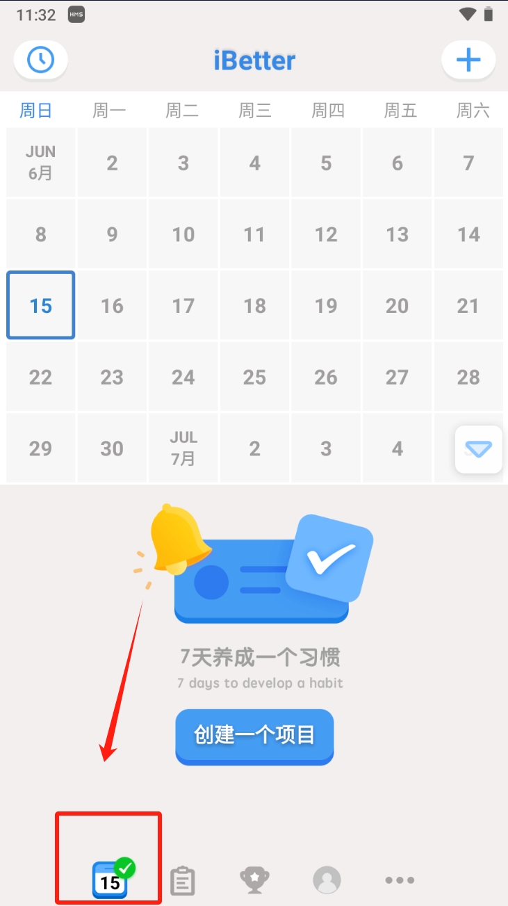 1、在日历中选择一个日期,点击“创建一个项目”按钮,开始建立新的习惯项目。