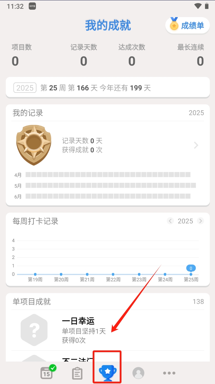 3、在“我的成就”页面中查看项目成就,点击项目查看详细成就记录。