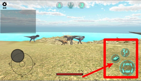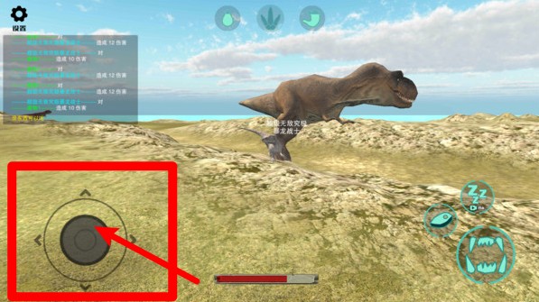 3.左下角为虚拟摇杆控制方向,向上推动前进,左右转向灵活控制,探索地图或追击猎物都离不开它。