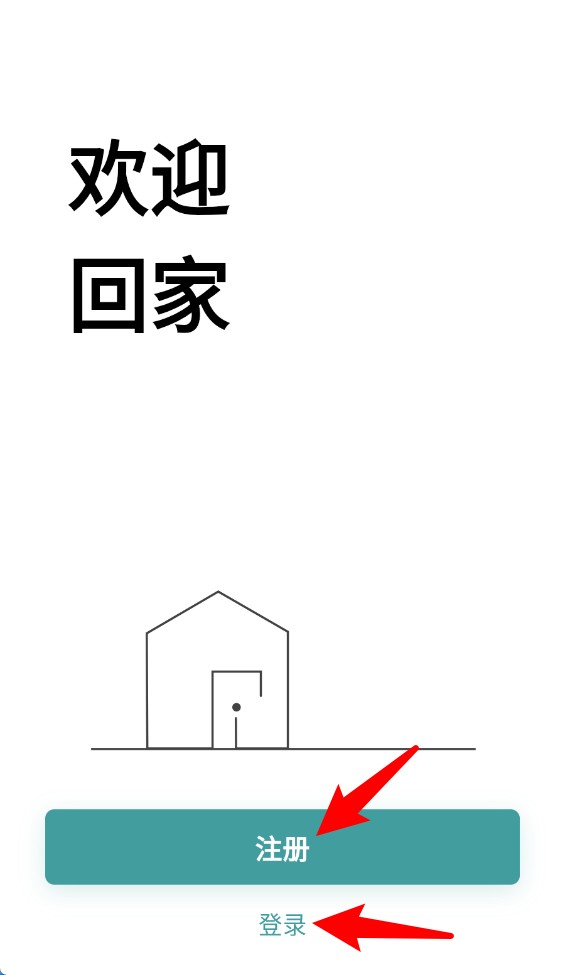 1.首次进入应用时会显示“欢迎回家”界面,用户可选择点击“注册”或“登录”进行账号操作。