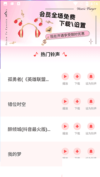 2、在铃声界面,选择你喜欢的铃声,里面有各种热门铃声;