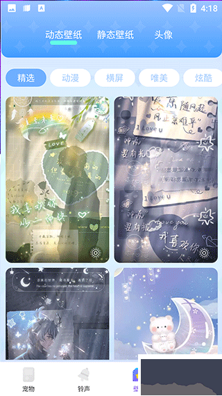 3、在壁纸板块,挑选你觉得好看的壁纸设置为桌面,里面有静态壁纸、动态壁纸以及头像。