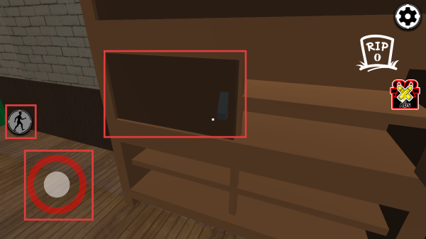 3、划动虚拟摇杆移动角色,点击按键即可切换蹲立姿势,点击场景中的物品可以进行互动。