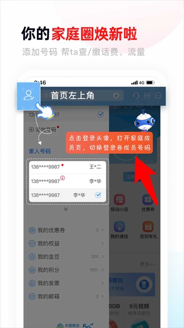 2.在首页点击头像即可进入家庭成员管理界面,添加或切换家庭成员账号,集中管理更高效。