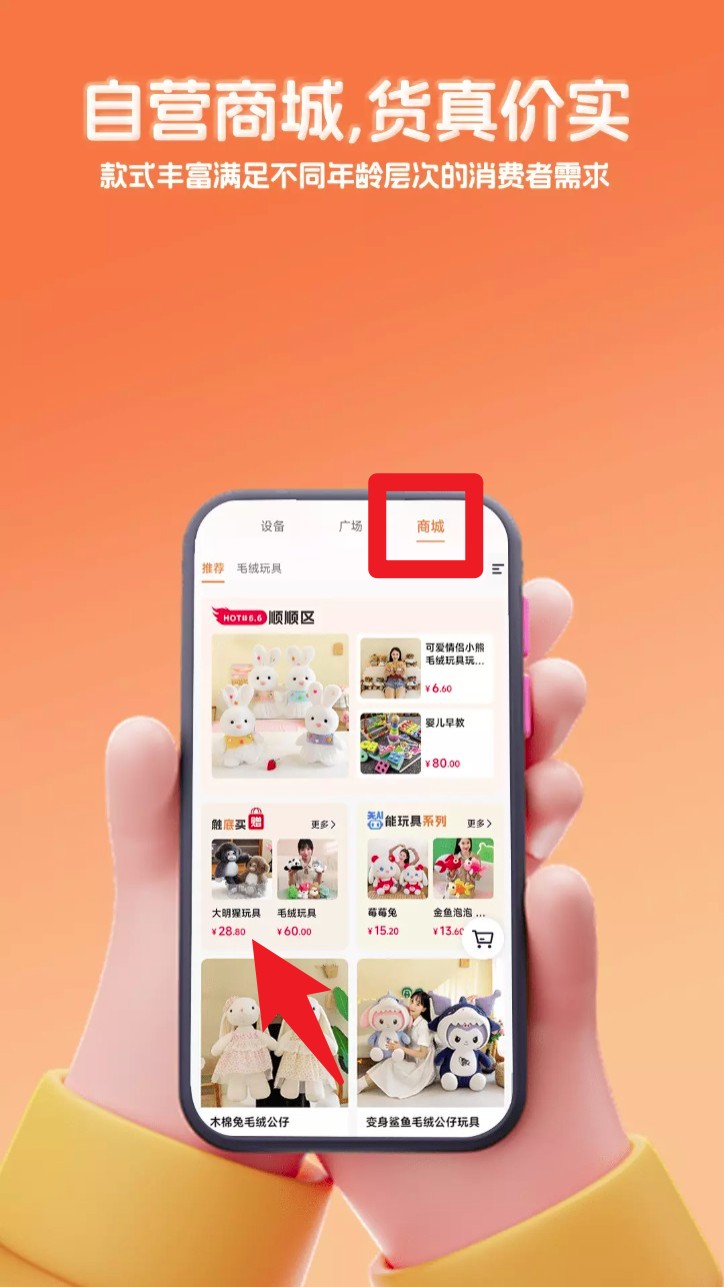 2. 点击右侧「商城」栏目,进入自营电商区,浏览分类商品,支持查看详情页后直接购买心仪商品。