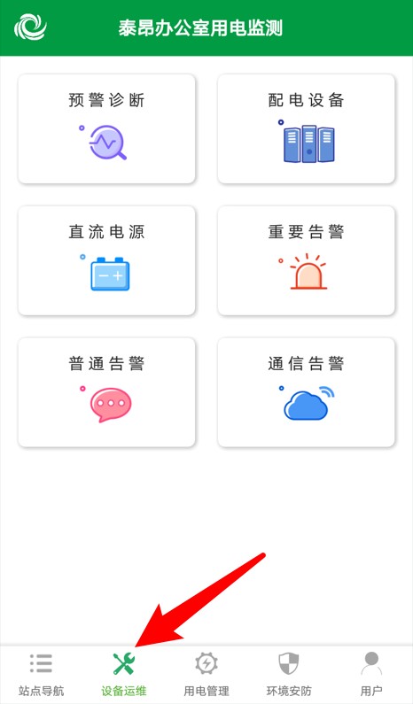 2、登录成功后进入主界面,可选择设备运维模块查看和管理配电相关功能。
