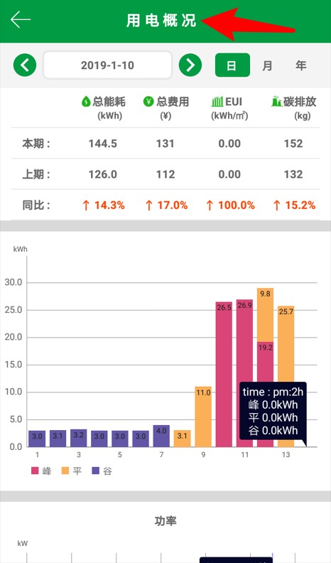 3、点击“用电概况”模块可查看每日、每月及年度的总能耗和费用数据分析图。