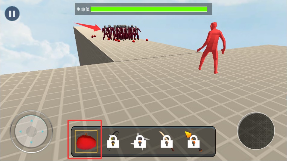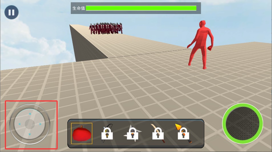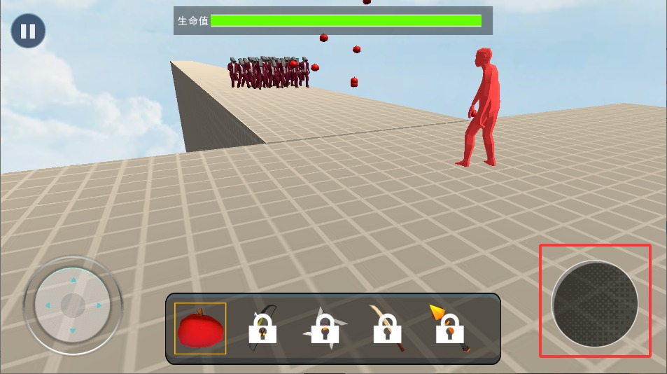 2、右侧按钮负责武器射击功能,把握时机发动连续攻击,注意保持安全距离避免被近身包围。