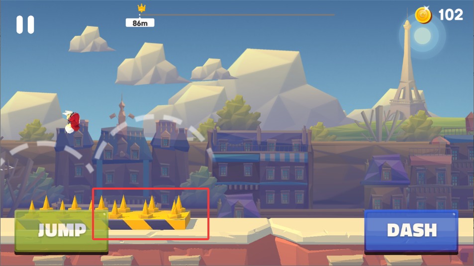 2、加速状态下角色获得撞击能力,可击碎沿途木箱但需避开红色障碍物。保持节奏交替使用跳跃和加速功能通过复杂地形。