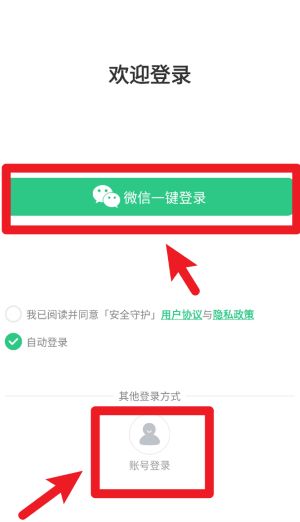 1、登录界面提供微信一键登录与账号登录两种方式,操作前需勾选同意用户协议与隐私政策。