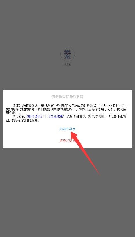 1、初次使用需完整阅读平台服务条款与隐私政策,确认后点击同意并接受进入应用。