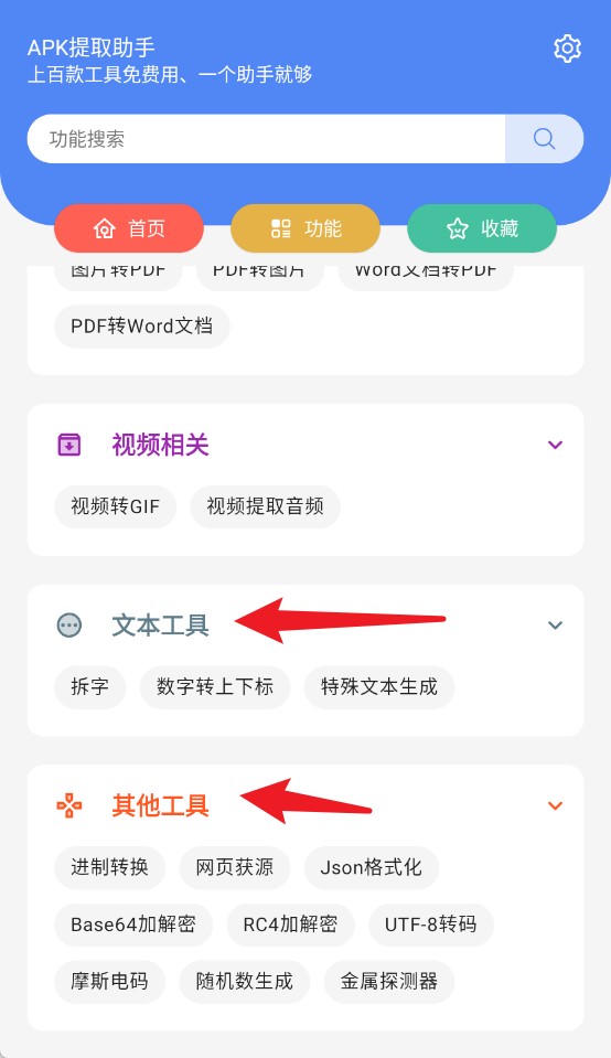 4、文本工具和其他工具整齐归类,支持拆字、加密、转码等丰富实用功能操作便捷。