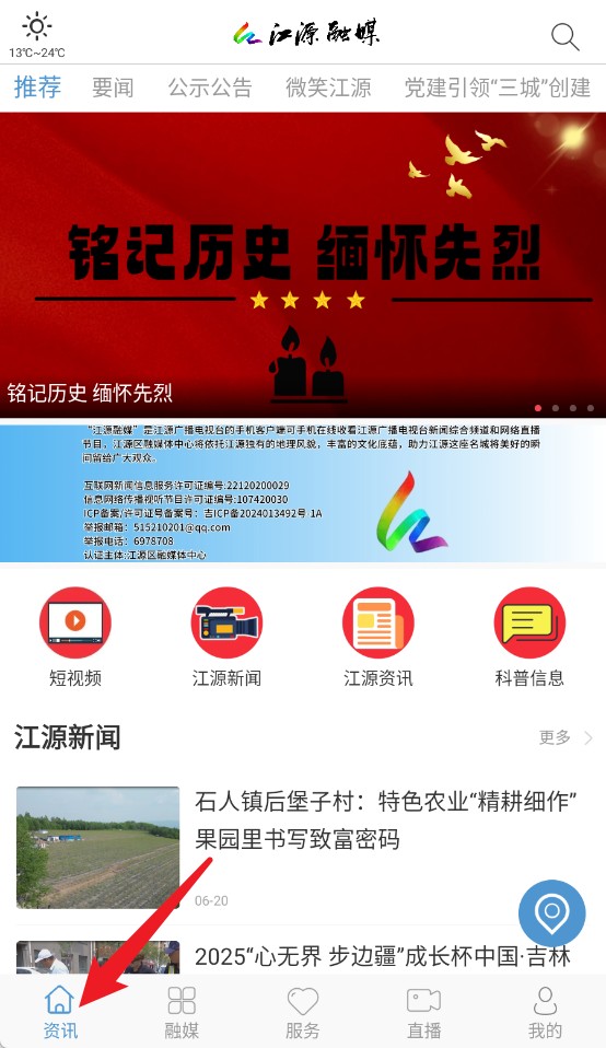 1、在首页“资讯”栏目可查看本地新闻、短视频和科普信息,内容丰富更新及时。