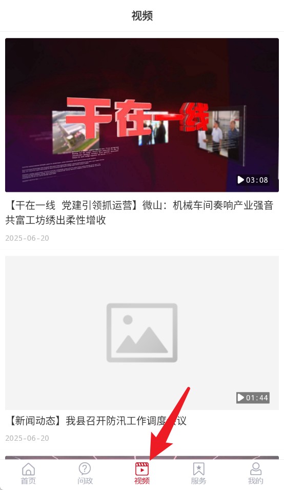 3、在“视频”栏目中可观看最新发布的政务宣传、新闻动态及本地活动影像。